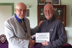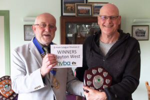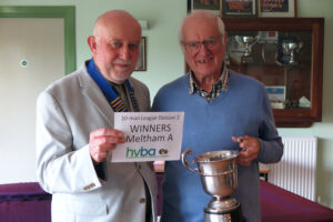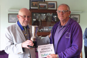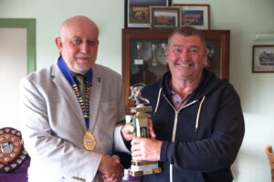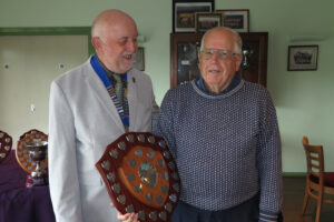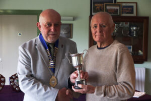 We had our traditional presentation of trophies at the 2024 half-year General Meeting which took place on 14th October. Whilst the competition trophies were all presented to the winners on the day of the competition, these had since been gathered up, polished and engraved. Not every winner could make it to the meeting to reclaim their trophy but their club representatives were more than happy to do so on their behalf. For the league division winners and runners up it was a different matter – this was the first time for getting their hands on the silverware, plus the envelopes containing their winners cheques. In addition our League Secretary David Sykes received a Life Membership Award.