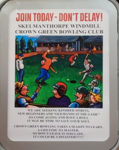 Richard Chaffer has shared with us some photographs of Skelmanthorpe Windmill’s latest recruitment poster. It’s a novel approach to attracting new members and a style instantly recognisable to anyone familiar with the art work around the green. Hopefully it will do the trick.