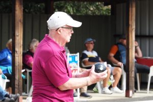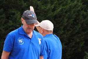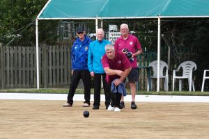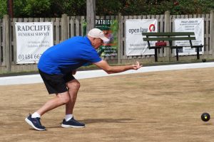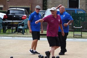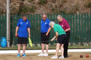 On a day of sunshine and heavy showers they went into the Bistro Final with a ten-point handicap advantage over their division one opponents from the Lindley Lib club. That looked likely to be soon extended out of sight as Mick Hiscock and John Sharp raced into a 20-5 lead over the Lindley pair Martin Skuse and Geoff Jaskolski. Another point at that stage and a lead of 26 after one tie would have taken some pulling back. However, Skuse and Jaskolski had other ideas, winning five consecutive ends saw them cut Elland’s lead to just two and then Lindley were in a match-winning situation until Sharp’s final bowl of the 20th end edged the Elland pair home 21-18.