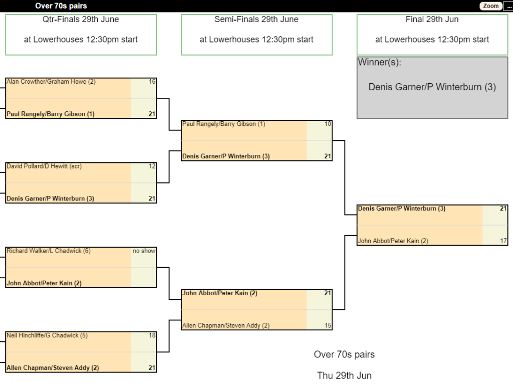 30 Jun DENIS GARNER & PAUL WINTERBURN NEW OVER 70’S PAIRS CHAMPS