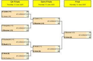 It wasn’t Hirst only scare of the afternoon at Lockwood Con. Drawn against Kevin McCluskey from Huddersfield Rec – who had a 7-point handicap advantage – a slow start from Hirst saw him 12-2 in arrears after just five ends. He levelled at 13-13 after 13 ends and although McCluskey took a 20-15 advantage the 2023 winner scored two on each of the last three ends to progress. Hirst defeated Robert Mudd (Waterloo) 21-11 in the semi-final, Bloomer progressing from that stage of the competition with a 21-11 success over Andy Carter (Marsh United).