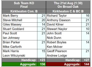 Billed as the ‘Battle of Kirkheaton’ the Con Club claimed a 156-144 success over their neighbours from the Cricket & Bowling Club (C&BC).