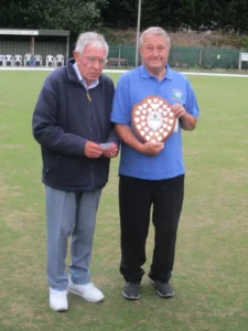 Our pictures show the victorious Lockwood Cons team and the HVBA President Mr Alan Hirst presenting Ronnie Manning the team captain with both the trophy and winners cheque.