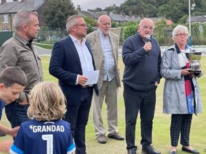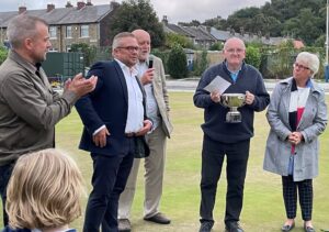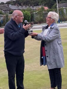 The new cup was presented to Mick Cox by Doreen Hoyle and Mick said being the first name on the trophy meant so much to him because he had so much respect for John as both a bowler and for his contribution to the association and bowling.